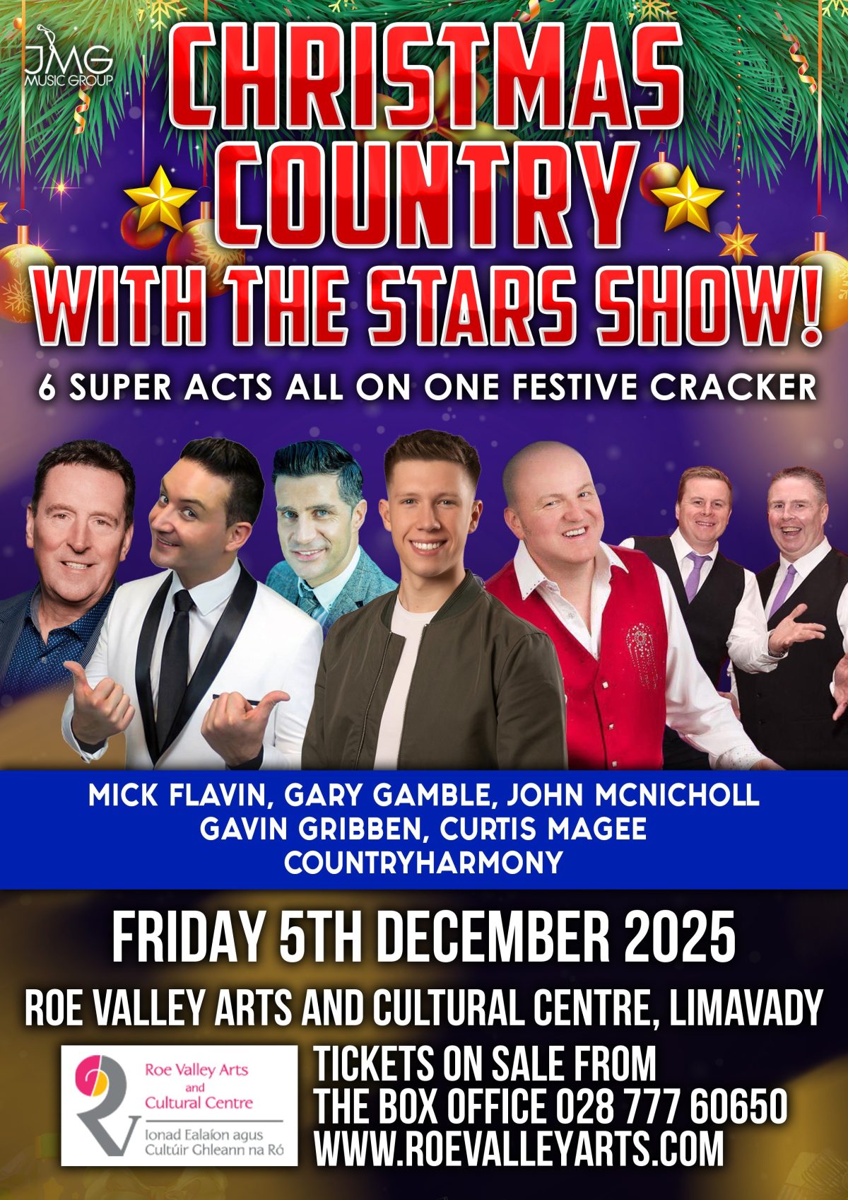 Get ready for a magical night of festive entertainment at the Christmas Country with the Stars Show! Join six incredible acts — Mick Flavin, Gary Gamble, John McNicholl, Gavin Gribben, Curtis Magee, and Country Harmony — for an unforgettable evening of music, laughter, and Christmas cheer.
