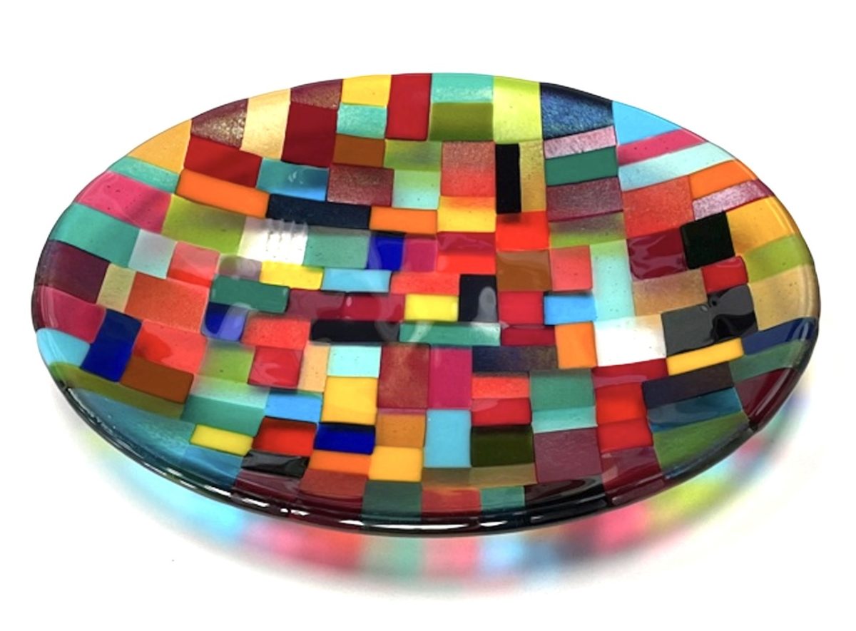 Design and assemble your own fused glass piece using vibrant colours and layered forms. Learn safe handling techniques and create a striking decorative artwork.